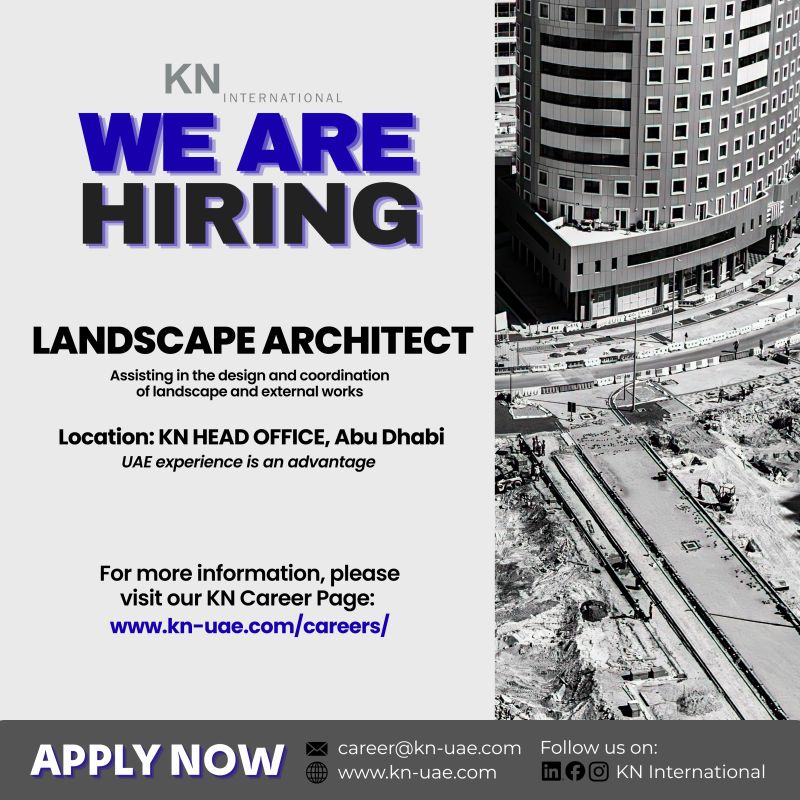 KN International is looking for a skilled and creative Landscape Architect to join our Head Office in Abu Dhabi. This role plays a key part in the design, planning, and coordination of landscape and external works for a variety of development projects across the UAE. If you are passionate about innovative landscape design and delivering sustainable, high-quality environments, we invite you to apply.