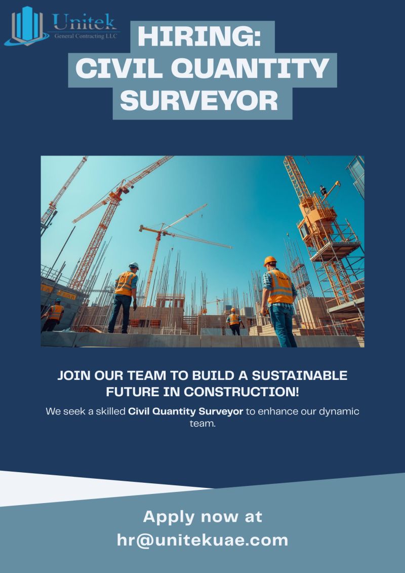 Unitek General Contracting LLC is seeking an experienced and detail-driven Quantity Surveyor – Civil (QS-Civil) to support the commercial, contractual, and cost management aspects of civil construction projects. The ideal candidate must possess strong analytical abilities, excellent technical knowledge, and proven UAE-based project experience.